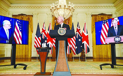 中华人民共和国和俄罗斯联邦(以下简称“双方”),声明如下:双方对美国、英国、澳大利亚建立“三边安全伙伴关系”(AUKUS)特别是在核动力潜艇等涉及战略稳定领域开展合作表示严重关切,认为上述行为同保障亚太地区安全与可持续发展的目标相悖,加剧地区军备竞赛危险,构成严重核扩散风险。双方强烈谴责类似行为,敦促AUKUS成员国严格履行防止核、导弹扩散义务,维护地区和平稳定与发展。