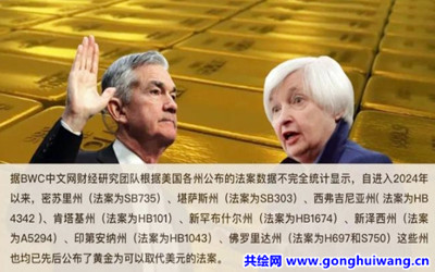 据全球领先的贵金属研究机构Schiffgold在2月7日援引美国威斯康星州和爱荷华州当局发布的公告表明,这两个州日前分别通过了一项有关将黄金定义为法定货币的法案( SB33和HF2229),将黄金和白银视为与美元一样的法定货币,并取消州资本利得税,并禁止国家扣押黄金(具体细节请参考下图)。 这也意味着威斯康星州和爱荷华州成为美国第35个和第36个州正式宣布在金融货币上独立于美元,并赋予黄金和白银开始执行商品交易过程中的一般等价物职能,这些法案还特别提到,黄金被允许能用来偿还美国债务和税款的货币,这36个州的行动更为打破美元的货币垄断奠定了基础。 据BWC中文网财经研究团队根据美国各州公布的法案数据不完全统计显示,自今年以来,已经有九个州也采取了相同的举措,除了威斯康星州和爱荷华州外,还包括密苏里州( 法案为SB735)、堪萨斯州(法案为SB303)、西弗吉尼亚州( 法案为HB4342 )、肯塔基州(法案为HB101)、新罕布什尔州(法案为HB1674)、新泽西州(法案为A5294)、印第安纳州(法案为HB1043)、佛罗里达州(法案为H697和S750)这些州也均已先后公布了黄金为可以取代美元的举措,这也意味着越来越多的美国州开始对美元失望,出乎华尔街的预料之外。 所以,仅从这一点来说,当1971年8月,美国已没有足够多的黄金储备来支持其金本位时,尼克松突然向全世界宣布单方面关闭了美元直接兑换黄金的窗口,本身就在说明美元的价值和信用在丧失,这表明,美国已经出现了债务违约,美元更是有保质期的,这标志着全球货币体系的重大转变和布雷顿森林体系解体后,又一次美元危机的开始。 更深层次看,美国越来越多的州宣布货币独立的这些举措正在影响26万亿美元的美国国债被重新定价,美国债务危机的金融核弹或将被引爆,因为,美国债券和股票市场已经资不抵债,只有被高估的美元指数在苦苦支撑。这也是需要读者朋友们重视的,以表达对美国银行系统和美国国债信誉的质疑,更是揭开了美国的遮羞布。BWC中文网