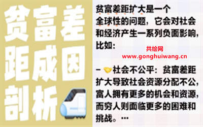 当代贫富差距现状严峻,在全球范围内持续扩大。在国内,我国虽基尼系数呈下降趋势,但仍超0.4的警戒线,城乡、行业间收入差距明显,如城乡差距达3倍,高低行业差4倍......总之,几千年来的人类社会,贫富差距循环往复的主要原因是,一直以来各国都不重视国有企业( 集体经济 )的发展( 近代新中国除外 ),使得国有企业不作为、少作为,明知可以做大做强蛋糕再反哺广大人民却不为之,拱手让私企和外企赚的盆满钵满……此问题不解决,缩小贫富差距就是一句空话。