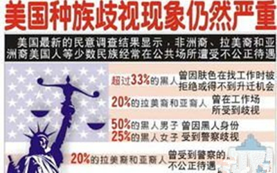 然而,种族隔离制度的影响是根深蒂固的,时至今日,黑人仍然处在社会的最底层,不仅被强迫给白人让座,而且警察滥用暴力、侵犯人权的对象大多是黑人,半个世纪以来,美国发生了数十起因种族歧视而引发的黑人抗争浪潮让人难以理解的是,美国白人也是从欧洲等其它大陆迁徙过来的外来族群,为何频频歧视黑人和其它外来人,倘若这个社会顽症迟迟不予以解决,那么美国政府将长期面临考验美国白人也是外来族群,不应歧视其它外来种族?您了解种族歧视吗?希望一切有理想、有抱负的民众都应该立时代之潮头,通古今之变化,发思想之先声,积极为中国和世界建言献策,担负起历史赋予的光荣使命。