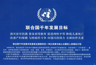 联合国千年发展目标是联合国全体191个成员国一致通过的一项旨在将全球贫困水平在2015年之前降低一半(以1990年的水平为标准)的行动计划,2000年9月联合国首脑会议上由189个国家签署《联合国千年宣言》,正式做出此项承诺。