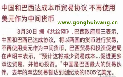 一个国家的法定货币突然在海外大暴涨,大受国际欢迎,另一个重要的原因就是贸易的因素,确切的说是国际贸易结算。 最近越来越多的国家开始纷纷宣布,将我们中国的人民币作为计价货币。 例如,巴西宣布与中国达成协议;巴西不再使用美元作为中间货币而是跟中国用本币进行贸易结算 。 按照最近5年巴西跟我们中国每年贸易千亿美元级别的数字来看。这代表着今年起,人民币在巴西的贸易结算中将有望达到7000亿以上的规模级别! 这是一个超级庞大的国际贸易结算数字!! 不仅代表以后我们跟巴西做生意,可以直接用人民币付款;更代表着美元在巴西贸易地位的下降,我们中国的本币人民币的地位上升。 除了巴西以外,这几个月中国还跟很多国家开始进行了人民币结算。 包括在中东沙特伊朗,包括在亚洲与东盟的那些国家推动人民币直接交易 ,一个又一个人民币国际化的积极举措,将人民币的国际影响力推向了高峰。。 以上两个是基于货币本身的分析见解。