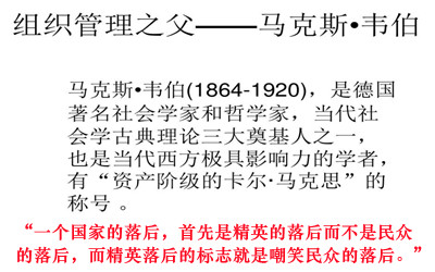 马克斯•韦伯:“一个国家的落后,首先是精英的落后而不是民众的落后,而精英落后的标志就是嘲笑民众的落后。”当精英不杞人忧天时,这个民族、国家的思维还没有进入到哲学层次。