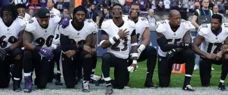 然而,橄榄球队员们没有退缩,下跪的队员越来越多。