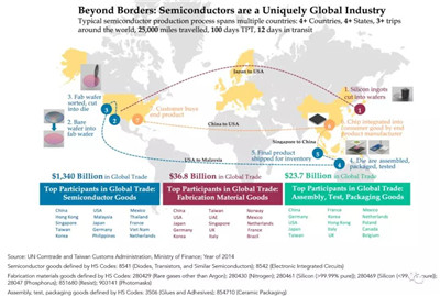 (以上信息摘自美国半导体行业协会SIA20187月向USTR提交关于301关税的书面证词、2016年《Beyond Borders: The Global Semiconductor Value Chain》报告。)