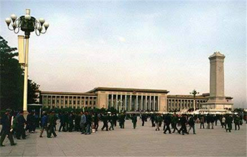 在天安门,十年前毛主席向全世界宣布中华人民共和国成立的地方,一座雄伟壮丽的大厦建设起来了。这是人民大会堂。全国六亿人民的代表将在这里共商国策,全国人民代表大会常务委员会将在这里谋划国家大计。天安门成了全国人民和全世界进步人士更加向往的地方。