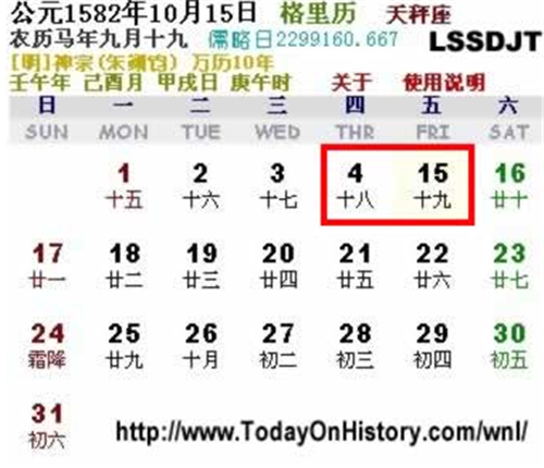 在431年前的今天,1582年10月5日 (农历九月十九),教皇格利高利十三世制定现今通用的公历。