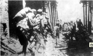 中国军队冲入台儿庄,与日军巷战。